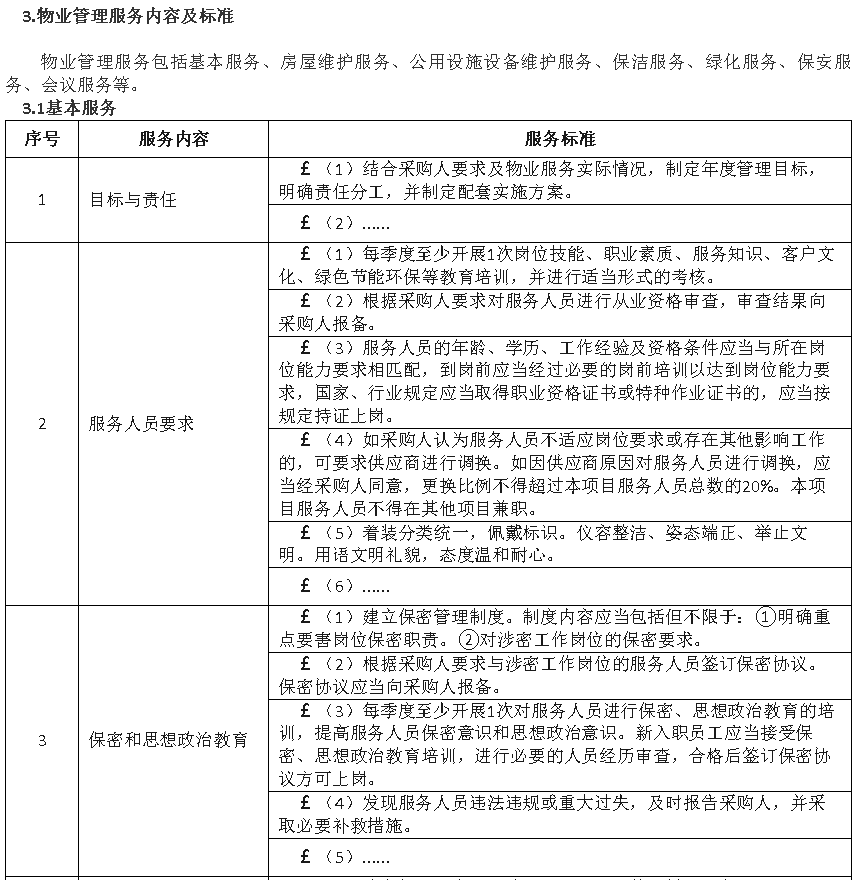 1.本需求标准适用于办公场所的物业管理服务政府采购项目。