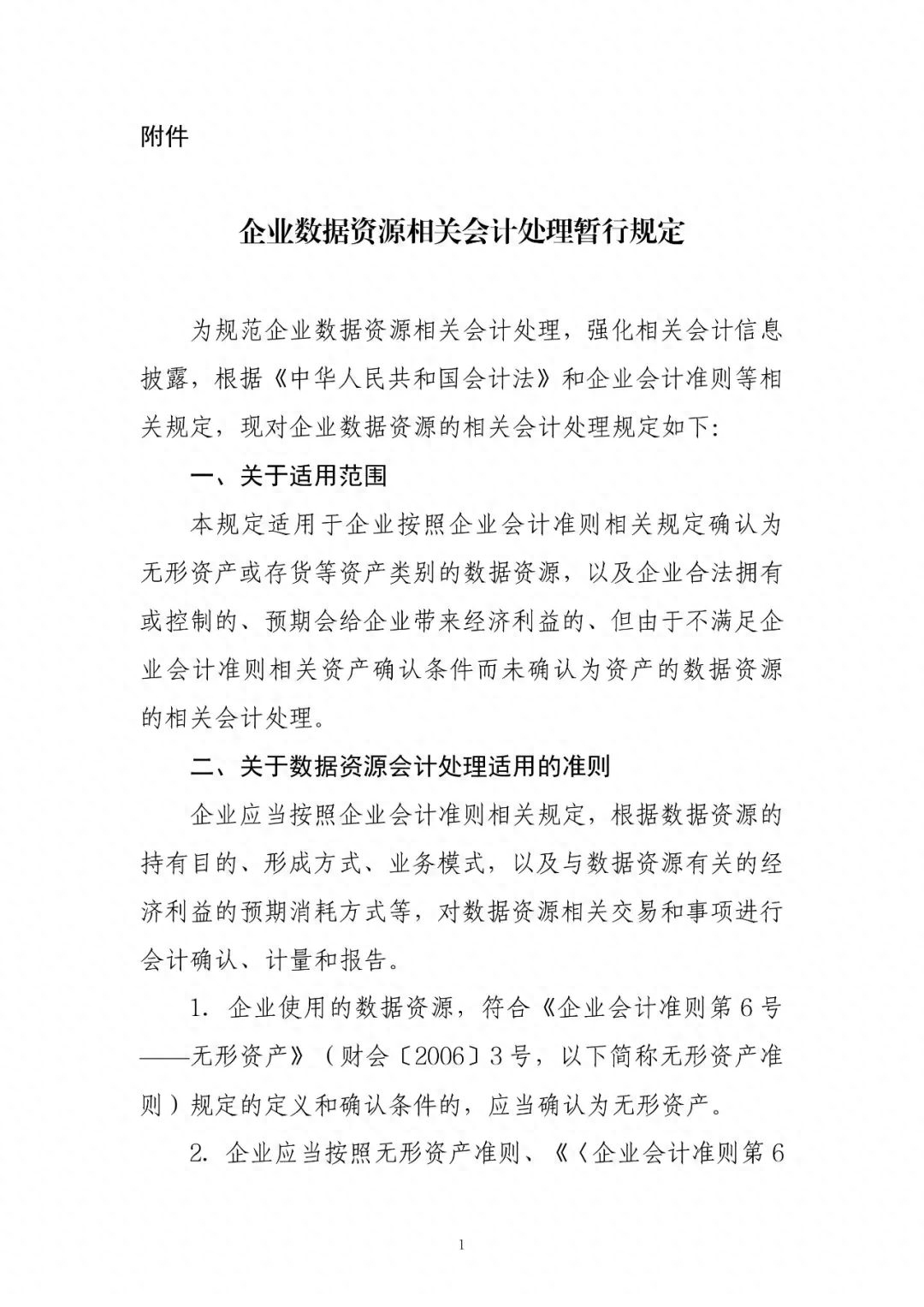 为规范企业数据资源相关会计处理,强化相关会计信息披露,根据《中华人民共和国会计法》和相关企业会计准则,我们制定了《企业数据资源相关会计处理暂行规定》,现予印发,请遵照执行。