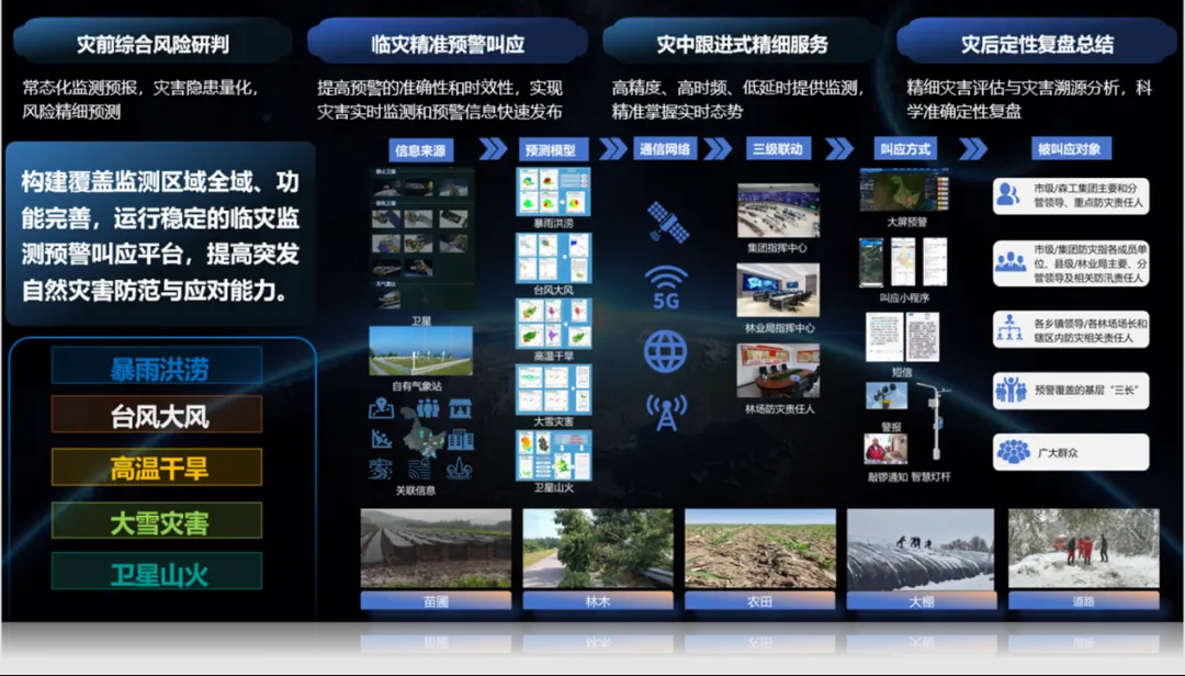 全球气候变化和自然灾害频发,应急管理等部门对精准灾害的预警和防御支持需求也在日益增加,目前,多源卫星数据冗余、区域精细化监测困难等问题,制约着我国灾害预警设施的进一步发展。哈尔滨国裕数据技术服务有限公司通过构建高精度数据模型,在灾害监测预警、现场应急指挥、灾后评估修复、灾害风险普查等方面投入研发,并与应急管理、粮食安全和能源保供等场景紧密融合,搭建了精准灾害防御决策平台,促进自然灾害应急管理精准化、集约化。